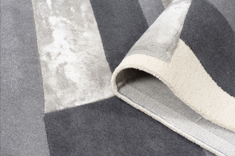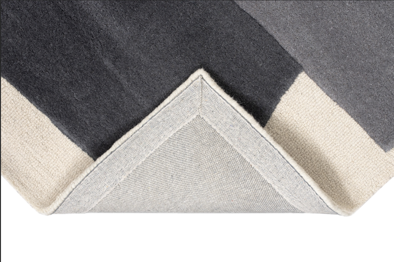 Los tapetes de la línea Hana, hechos de lana y algodón y a mano en la India son el complemento perfecto para tu hogar. Color azul/gris.